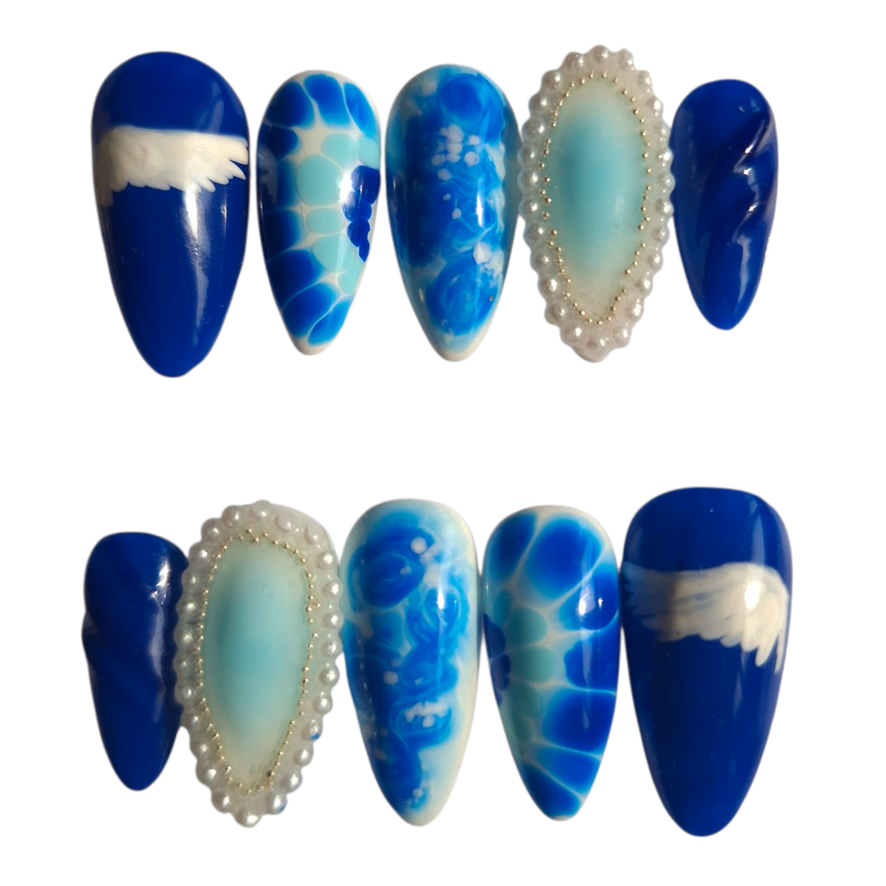 This press on nail set was inspired by Stray Kids' Blueprint music video. They're quick and easy to apply, durable and reusable.
